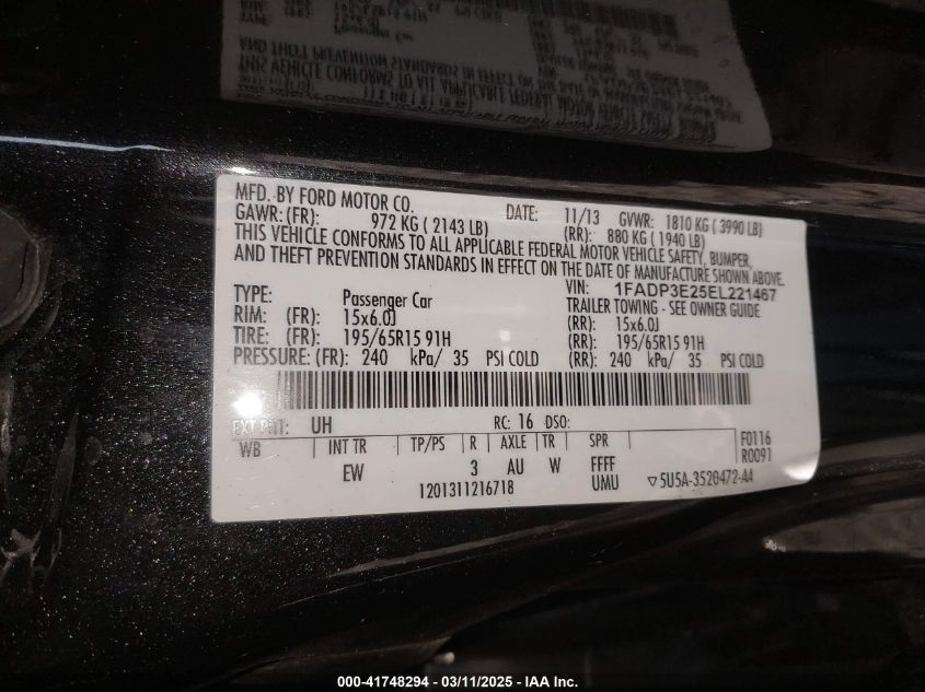 FORD FOCUS 2.0 2014 р.в., Передній привід (1FADP3E25EL221467) з США