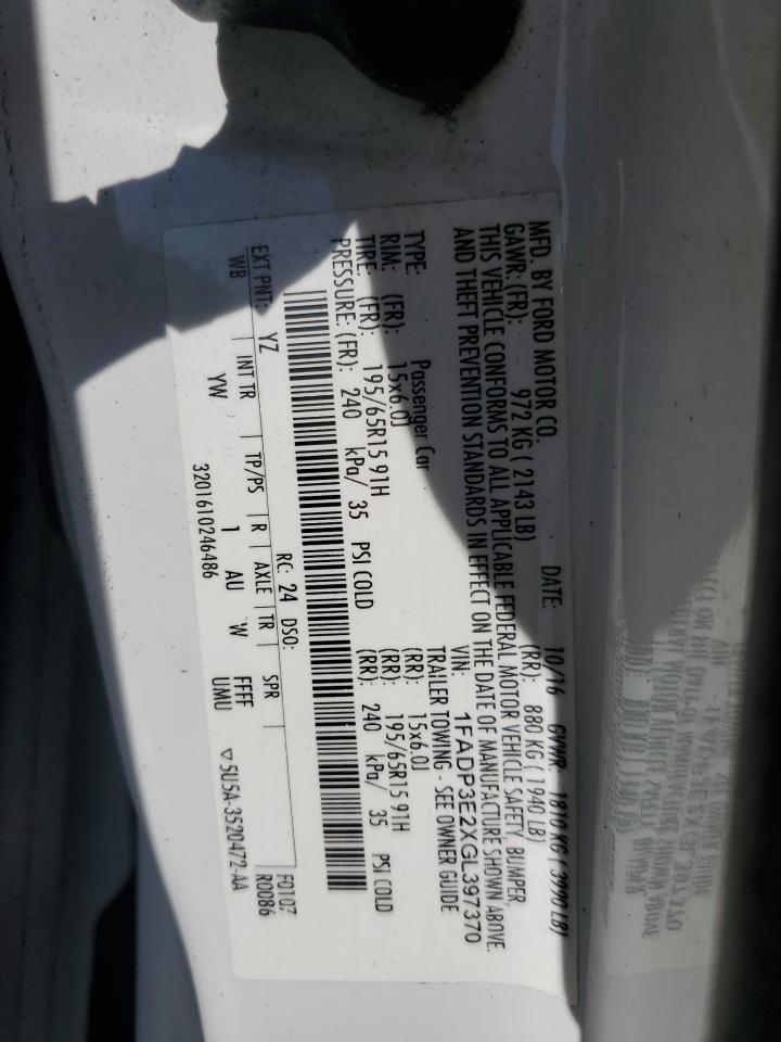 Колір БілийЦиліндри 4VIN 1FADP3E2XGL397370Стан Заводиться та їде (перевірено)Ушкодження НезначніДата аукціону 2025-11-05