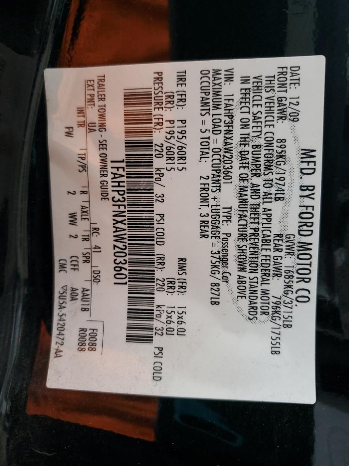 FORD FOCUS 2.0 2010 р.в., (1FAHP3FNXAW203601) з США