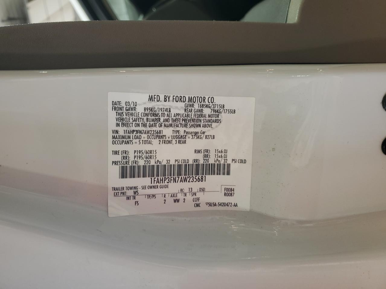 Колір БілийЦиліндри 4VIN 1FAHP3FN7AW235681Стан Заводиться та їде (перевірено)Ушкодження З боківДата аукціону 2025-11-03