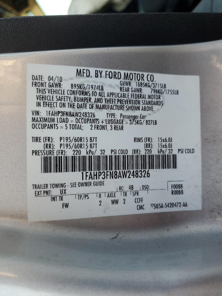Колір СрібнийЦиліндри 4VIN 1FAHP3FN8AW248326Стан НевідомоУшкодження Передня або задня