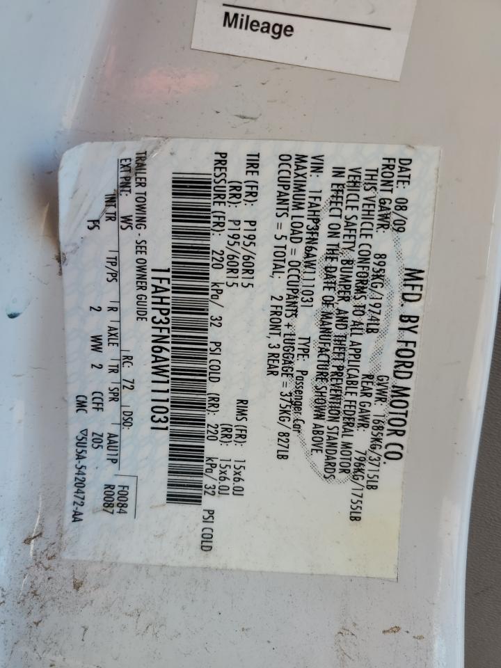 Колір БілийЦиліндри 4VIN 1FAHP3FN6AW111031Стан НевідомоУшкодження З боків