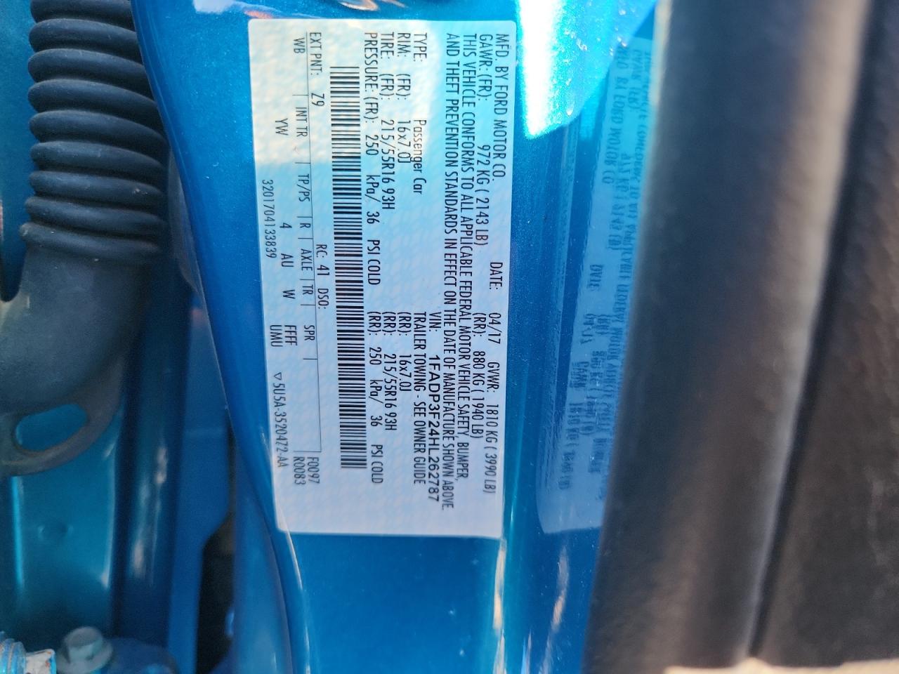 Колір СинійЦиліндри 4VIN 1FADP3F24HL262787Стан Заводиться та їде (перевірено)Ушкодження Передня або задня