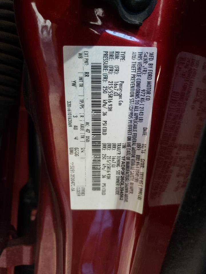 Колір БургундіяЦиліндри 4VIN 1FADP3F26GL394562Стан Заводиться та їде (перевірено)Ушкодження Передня або задня