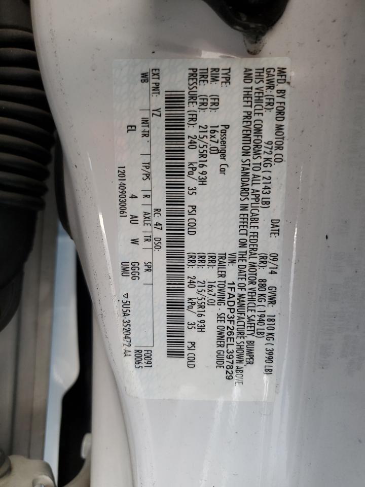 Колір БілийЦиліндри 4VIN 1FADP3F26EL397829Стан Заводиться та їде (перевірено)Ушкодження З боків