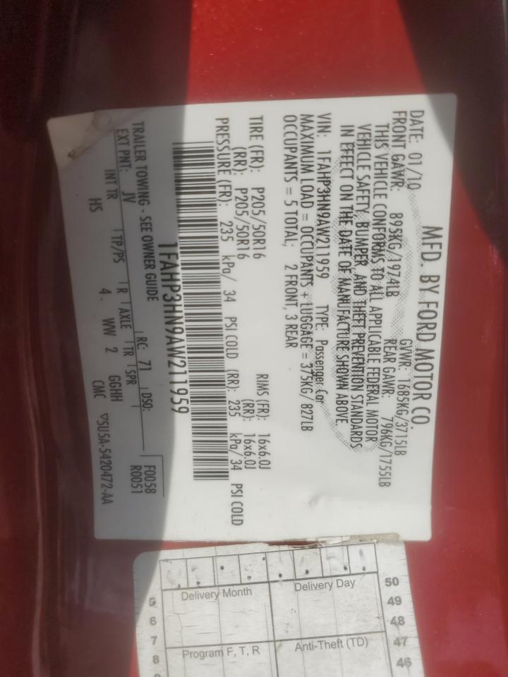Колір ЧервонийЦиліндри 4VIN 1FAHP3HN9AW211959Стан НевідомоУшкодження Передня або задня