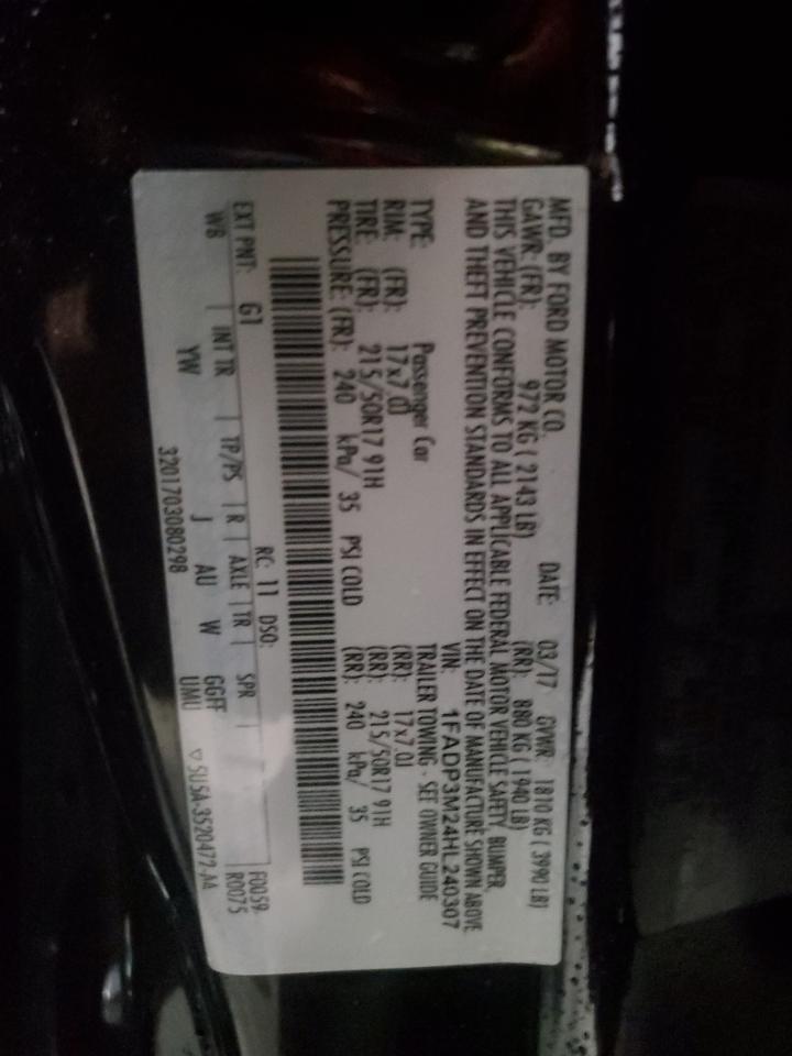 Колір ЧорнийЦиліндри 4VIN 1FADP3M24HL240307Стан Заводиться та їде (перевірено)Ушкодження Передня або задня