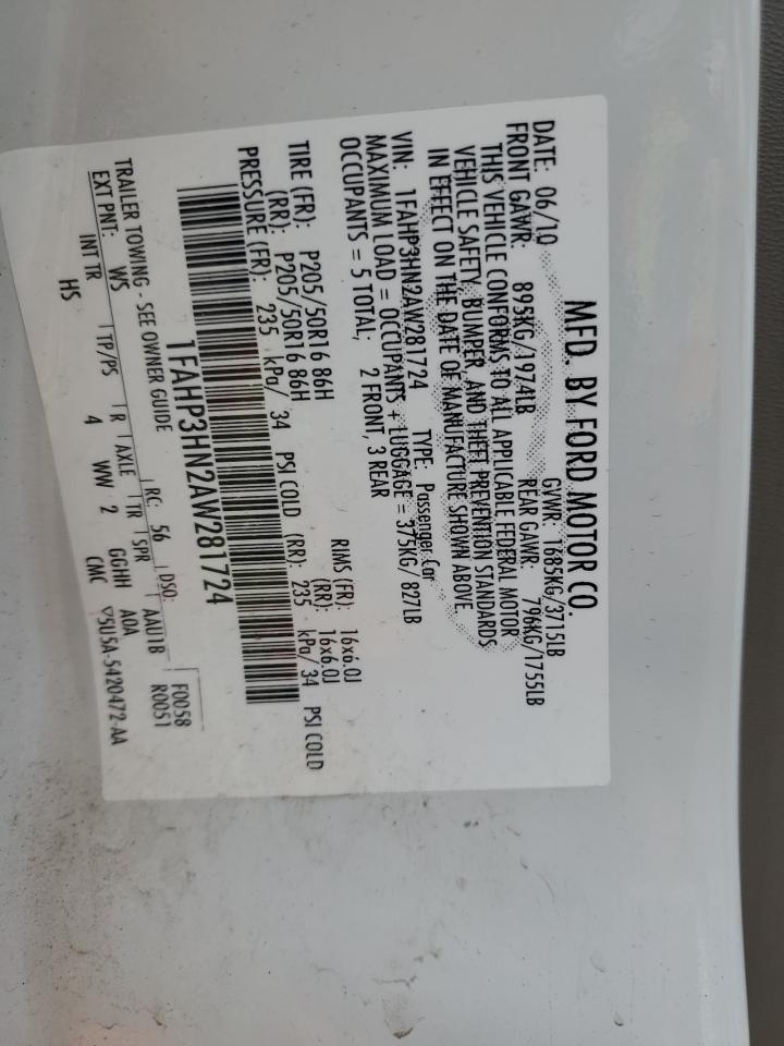 FORD FOCUS 2.0 2010 р.в., (1FAHP3HN2AW281724) з США