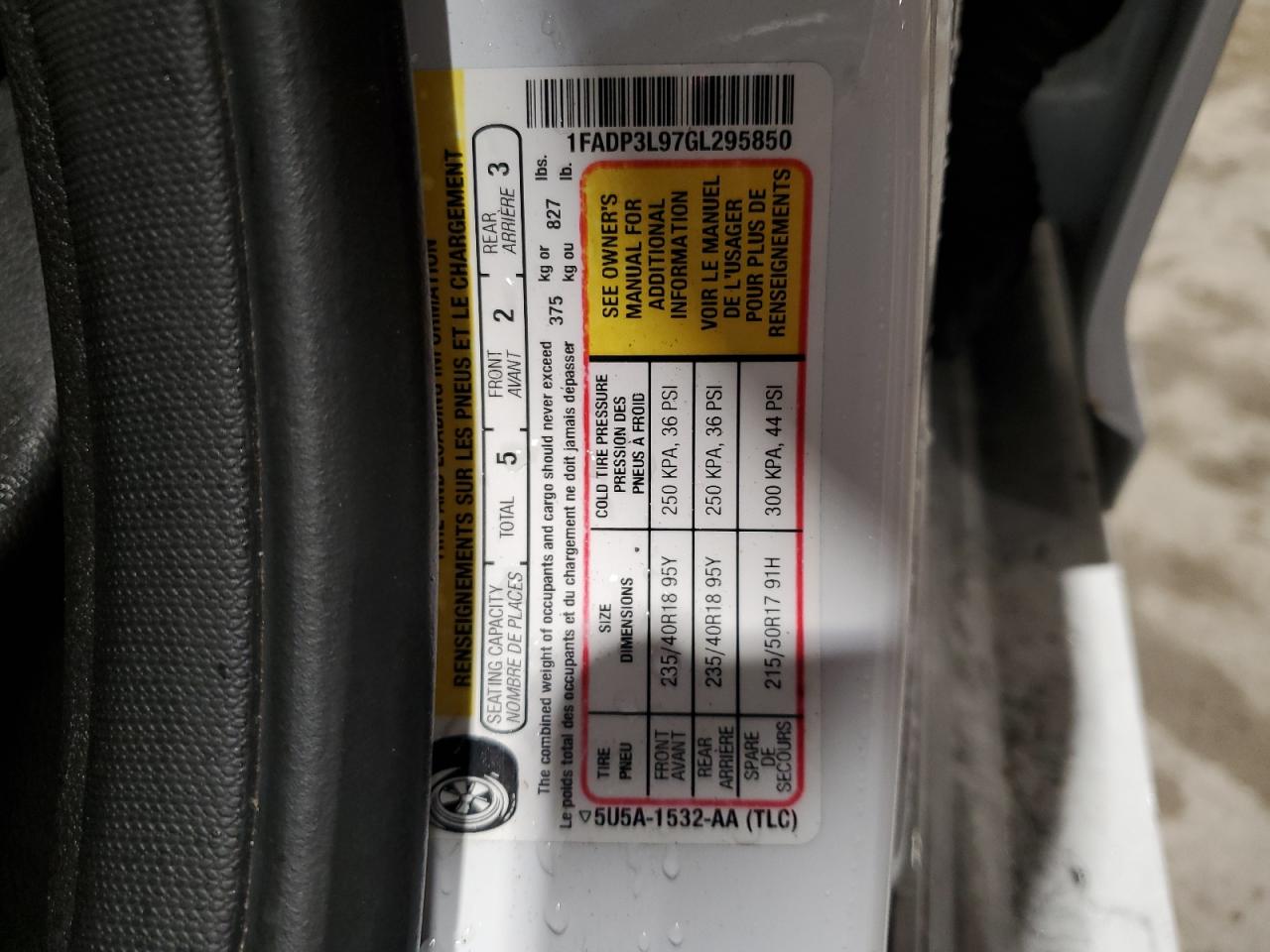 Колір БілийЦиліндри 4VIN 1FADP3L97GL295850Стан Заводиться та їде (перевірено)Ушкодження З боківДата аукціону 2025-11-12