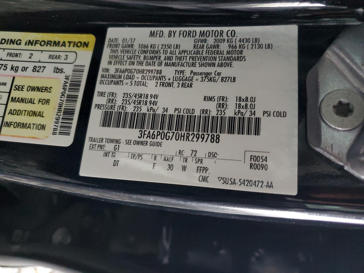 Колір ЧорнийЦиліндри 4VIN 3FA6P0G70HR299788Стан Заводиться та їде (перевірено)Ушкодження Передня або задня