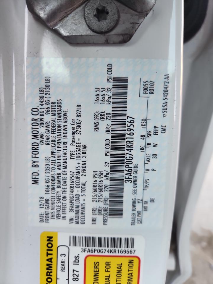 FORD FUSION 2.5 2019 р.в., (3FA6P0G74KR169567) з США