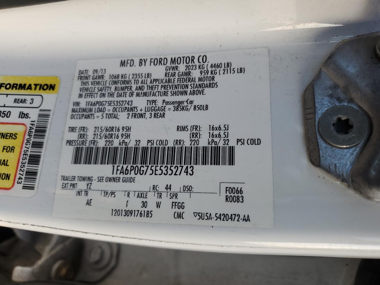 Колір БілийЦиліндри 4VIN 1FA6P0G75E5352743Стан Заводиться та їде (перевірено)Ушкодження Передня або задня