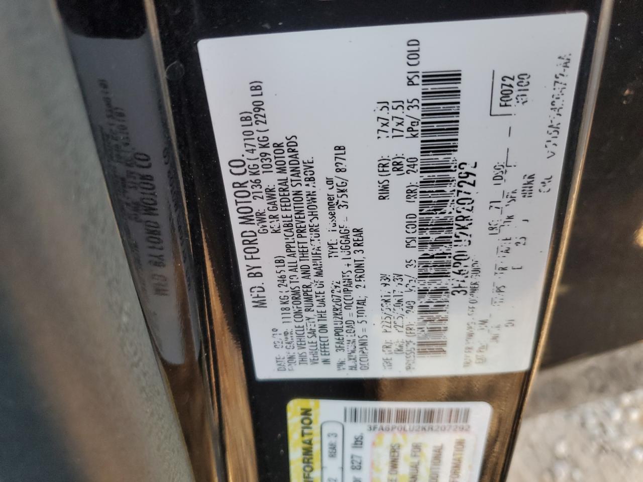 FORD FUSION 2.0 2019 р.в., (3FA6P0LU2KR207292) з США