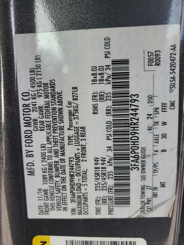 Колір СірийЦиліндри 4VIN 3FA6P0HD9HR244793Стан Заводиться та їде (перевірено)Ушкодження Передня або задняДата аукціону 2025-11-03