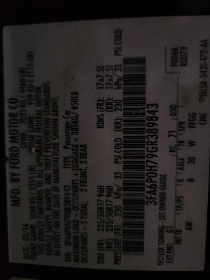 2016 FORD FUSION S