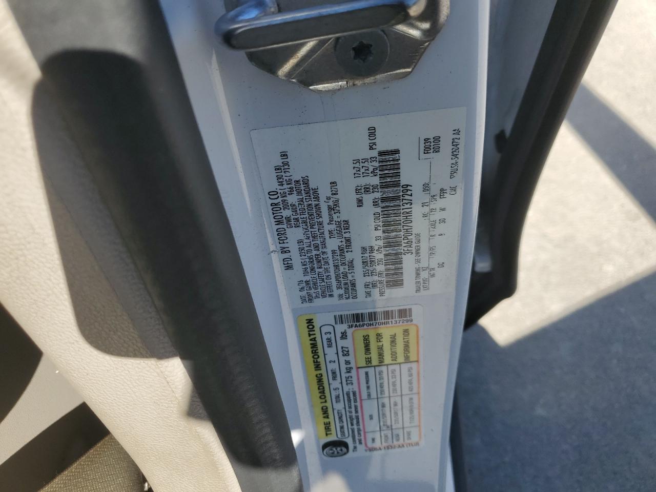 Колір БілийЦиліндри 4VIN 3FA6P0H70HR137299Стан НевідомоУшкодження Передня або задня
