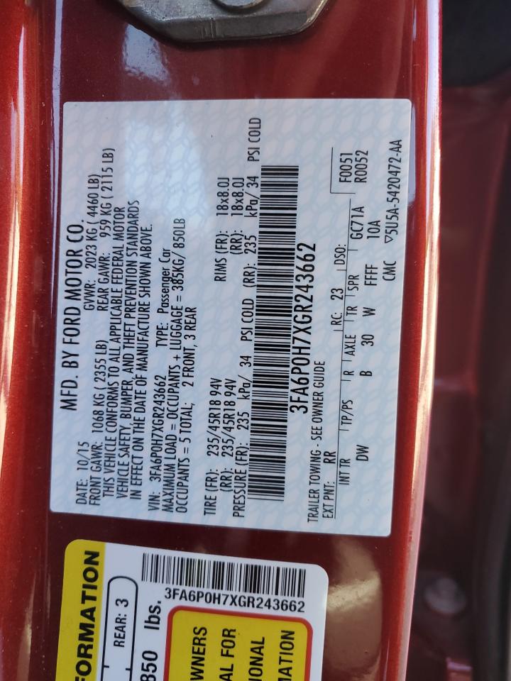 Колір ЧервонийЦиліндри 4VIN 3FA6P0H7XGR243662Стан Заводиться та їде (перевірено)Ушкодження Передня або задня