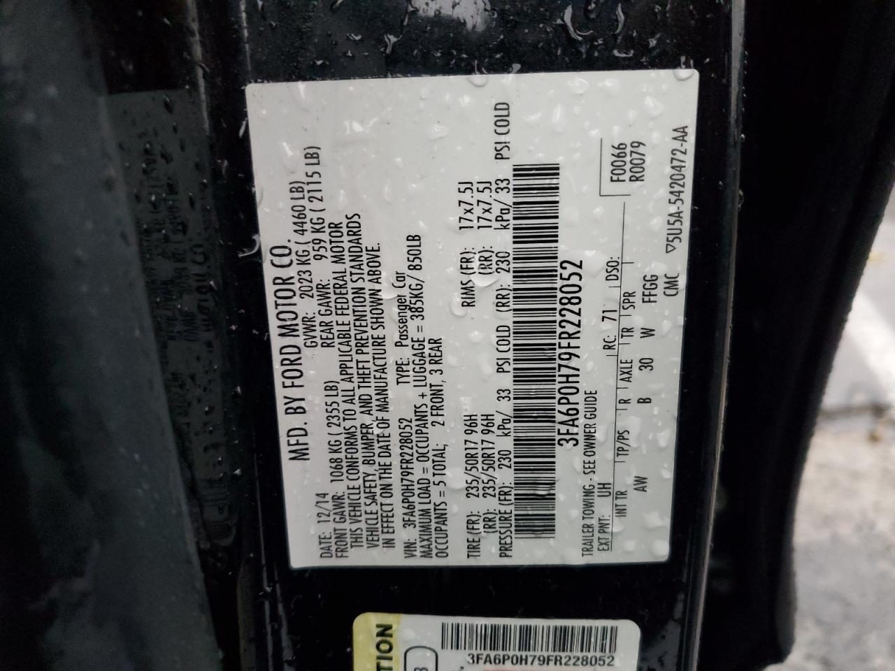 2015 FORD FUSION S