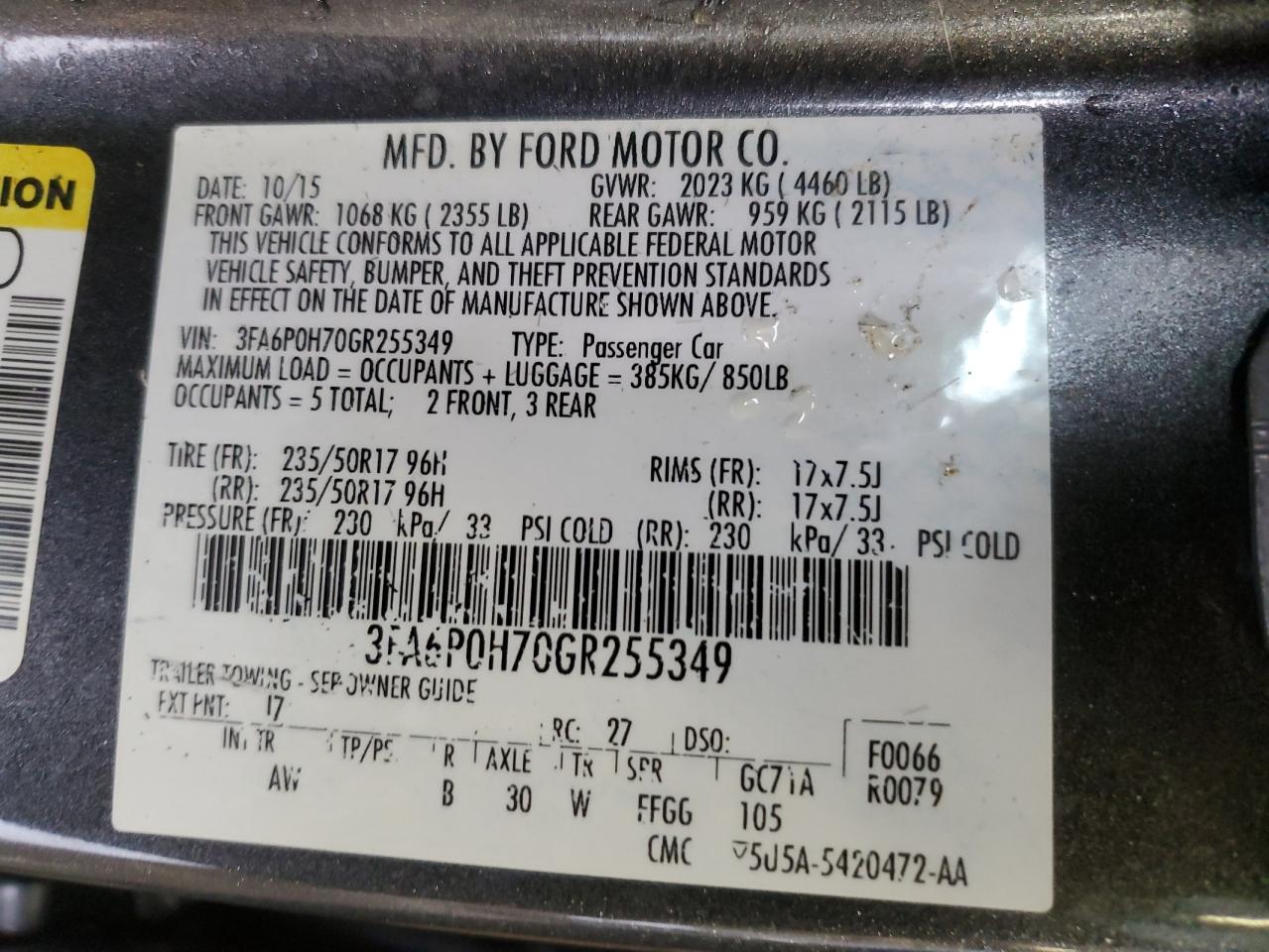 Колір СірийЦиліндри 4VIN 3FA6P0H70GR255349Стан НевідомоУшкодження Передня або задня