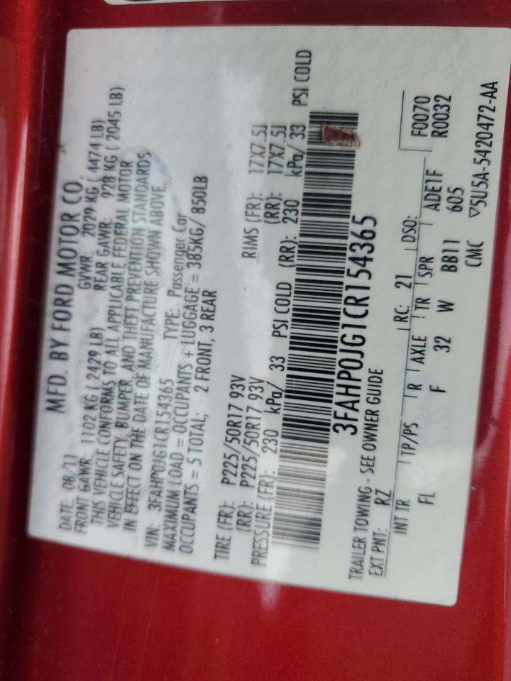 Колір ЧервонийЦиліндри 6VIN 3FAHP0JG1CR154365Стан Заводиться та їде (перевірено)Ушкодження Передня або задняДата аукціону 2025-11-18