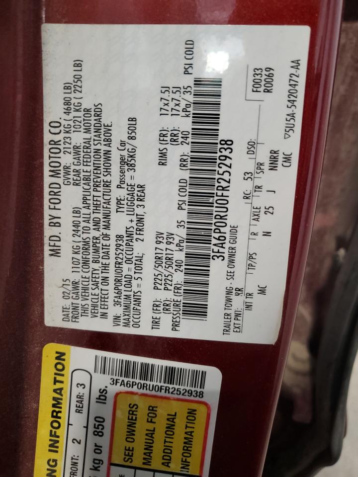Колір ЧервонийЦиліндри 4VIN 3FA6P0RU0FR252938Стан Заводиться та їде (перевірено)Ушкодження Передня або задня