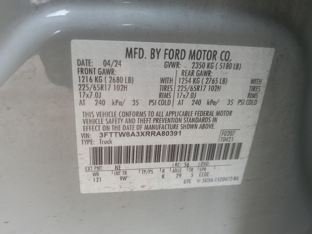FORD MAVERICK 2.5 2024 р.в., (3FTTW8A3XRRA80391) з США