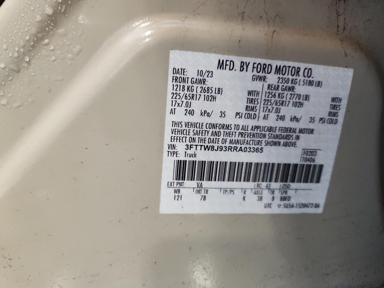 FORD MAVERICK 2.0 2024 р.в., Повний привід (3FTTW8J93RRA03365) з США