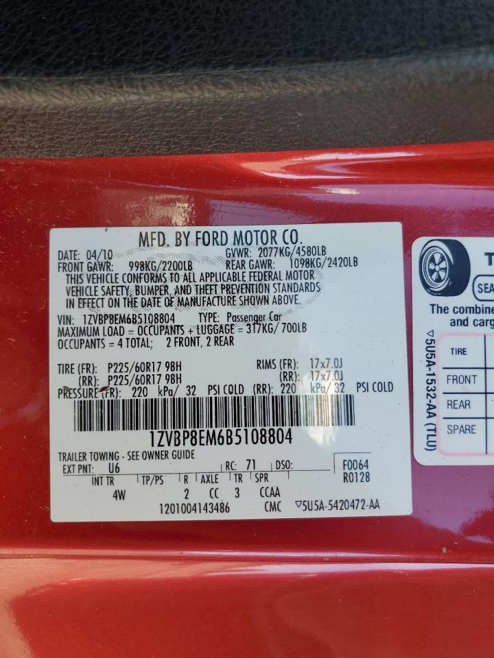 Колір ЧервонийЦиліндри 6Привід Задній привідVIN 1ZVBP8EM6B5108804Стан Заводиться та їде (перевірено)Ушкодження Передня або задняДата аукціону 2025-11-04