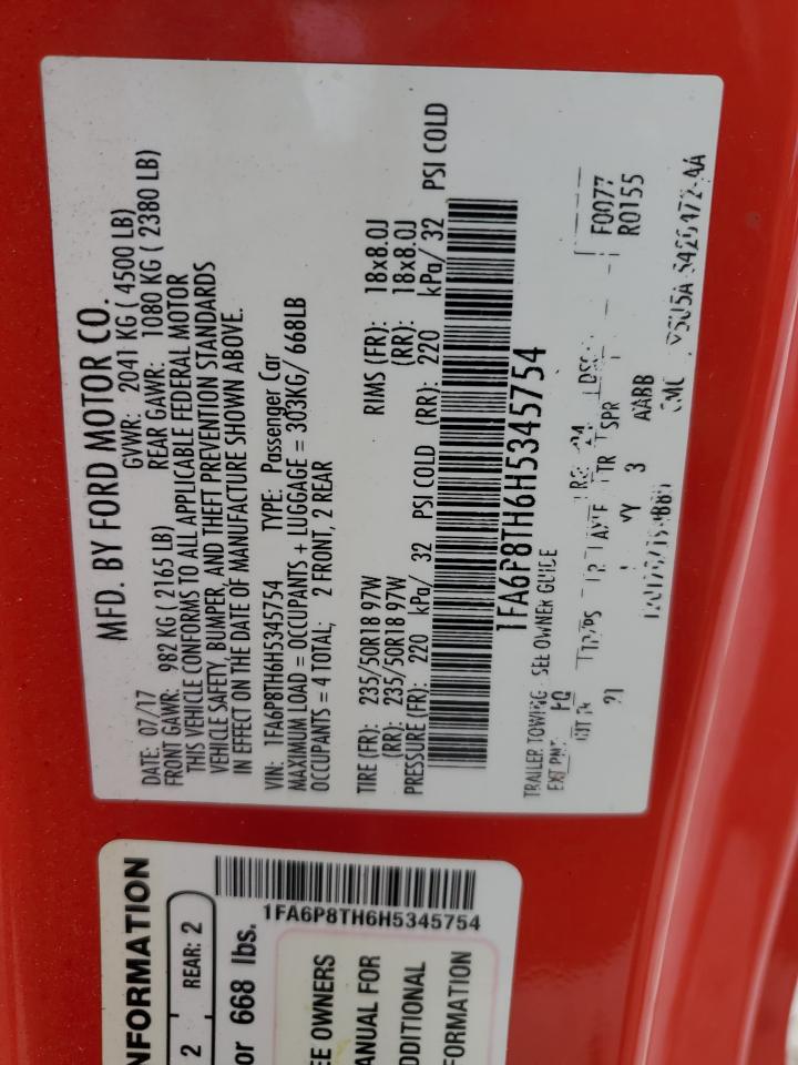 FORD MUSTANG 2.3 2017 р.в., Задній привід (1FA6P8TH6H5345754) з США