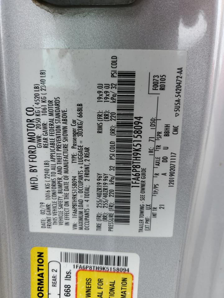 2019 FORD MUSTANG ECOBOOST PREMIUM