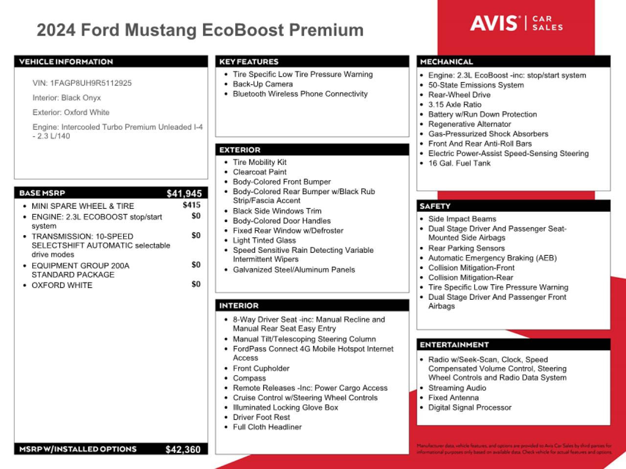2024 FORD MUSTANG PREMIUM