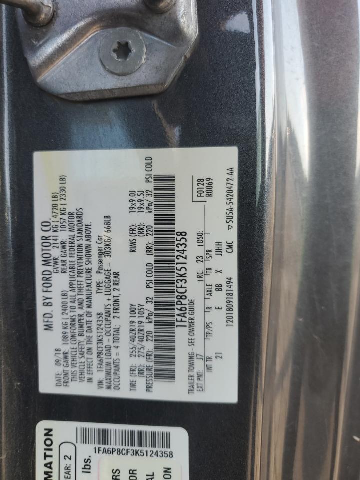 FORD MUSTANG 5.0 2019 р.в., Задній привід (1FA6P8CF3K5124358) з США