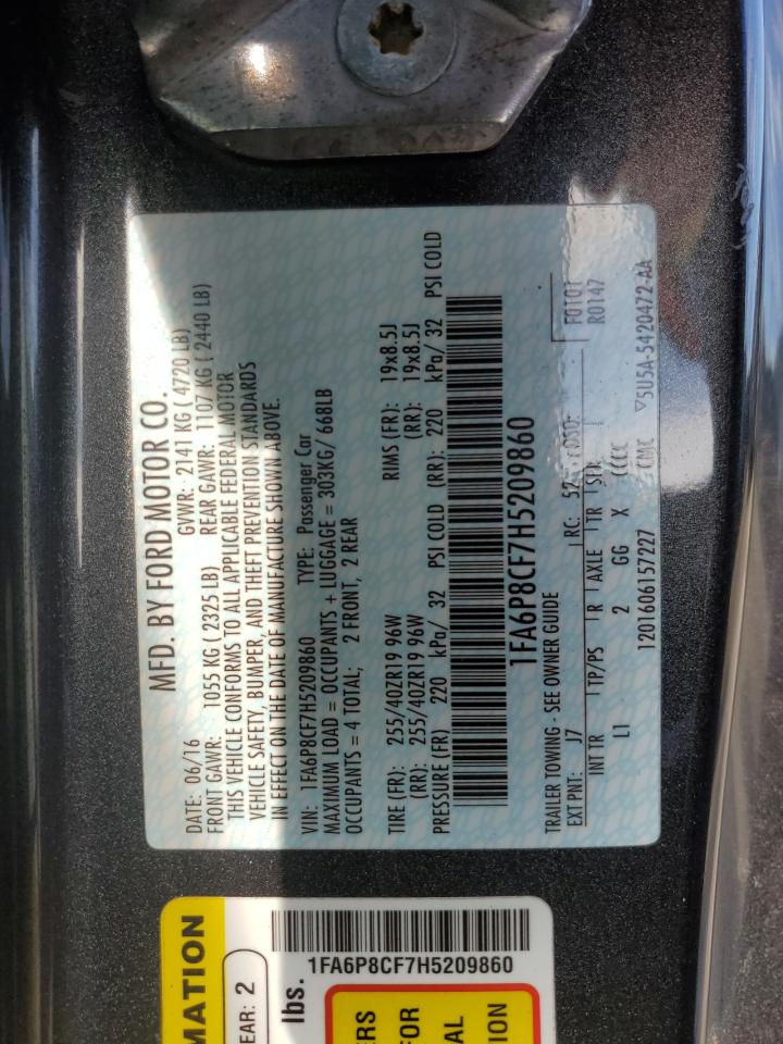 FORD MUSTANG 5.0 2017 р.в., Задній привід (1FA6P8CF7H5209860) з США