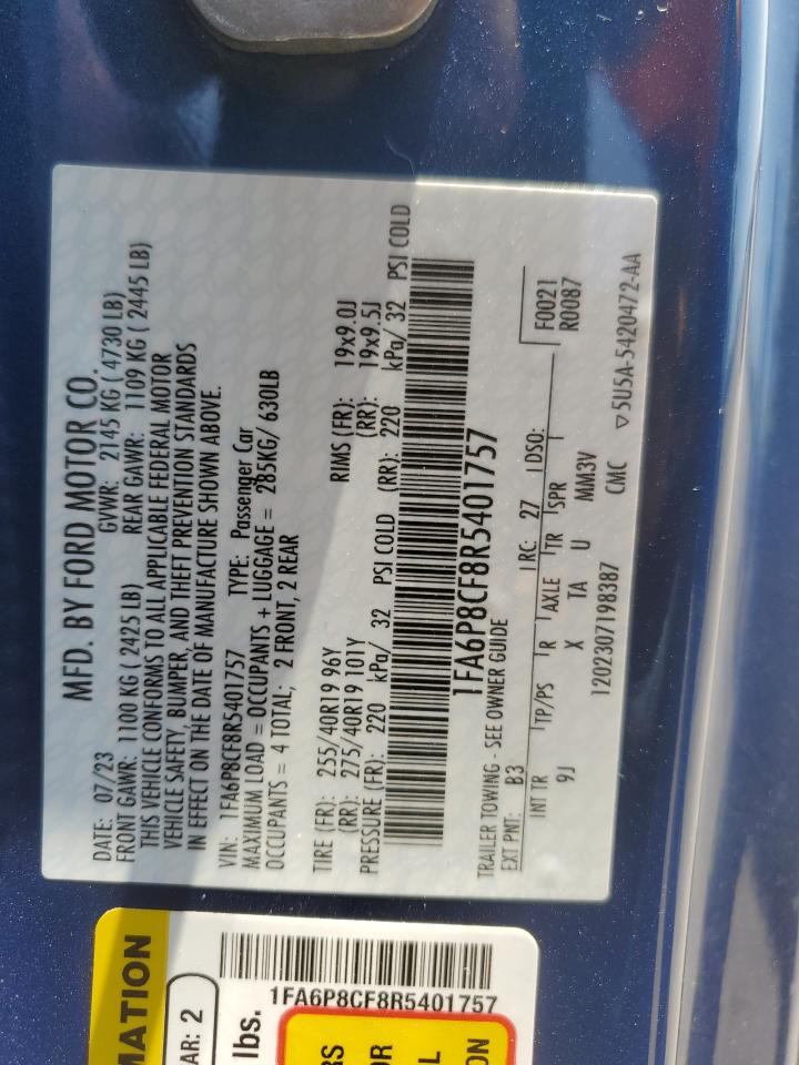 FORD MUSTANG 5.0 2024 р.в., Задній привід (1FA6P8CF8R5401757) з США