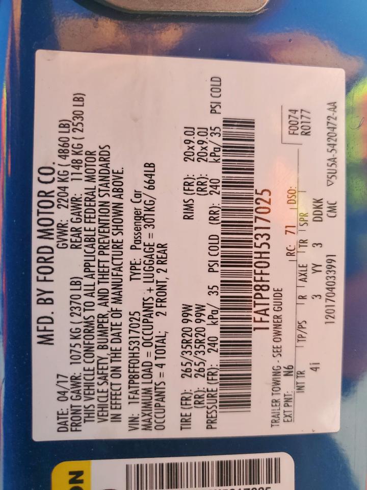 FORD MUSTANG 5.0 2017 р.в., Задній привід (1FATP8FF0H5317025) з США