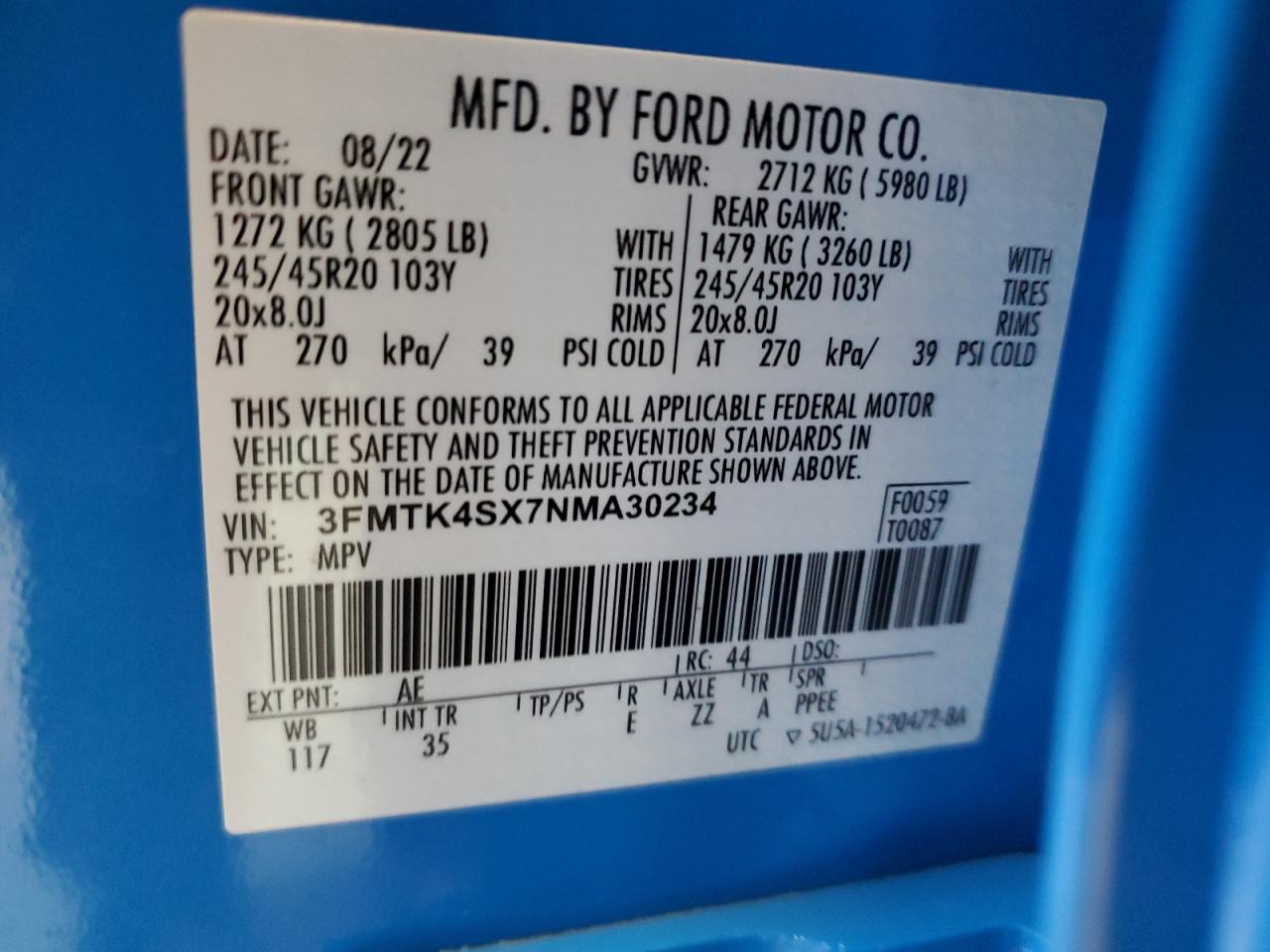 Колір СинійПривід Повний привідVIN 3FMTK4SX7NMA30234Стан Заводиться та їде (перевірено)Ушкодження З боківДата аукціону 2025-11-05