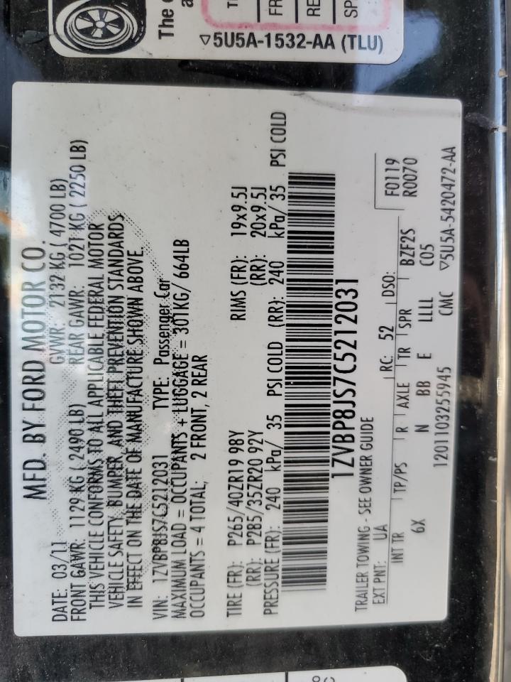 FORD MUSTANG 5.4 2012 р.в., Задній привід (1ZVBP8JS7C5212031) з США