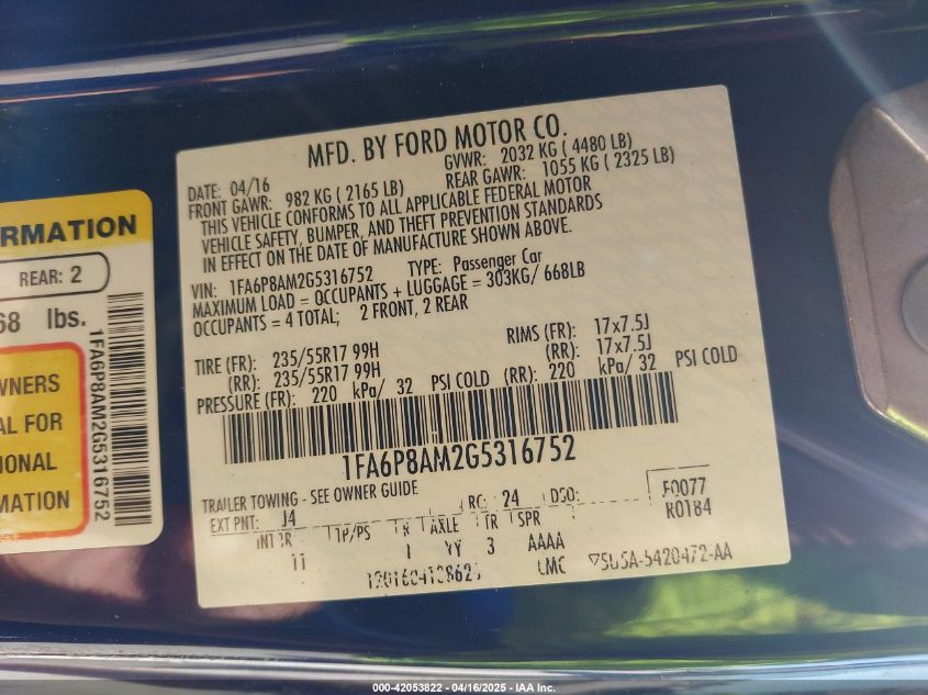 2016 FORD MUSTANG V6