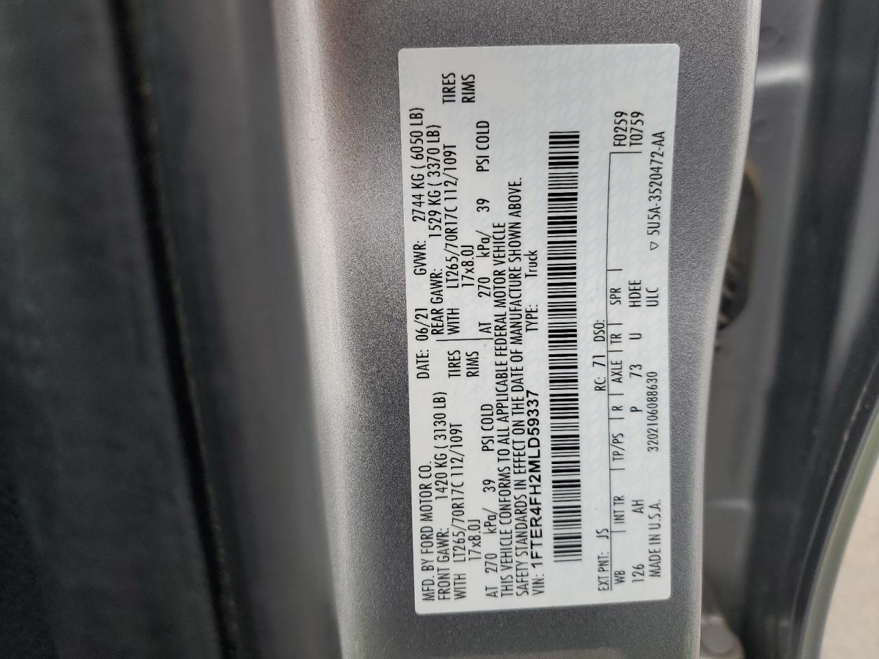 FORD RANGER 2.3 2021 р.в., 4x4 з заднім приводом (1FTER4FH2MLD59337) з США