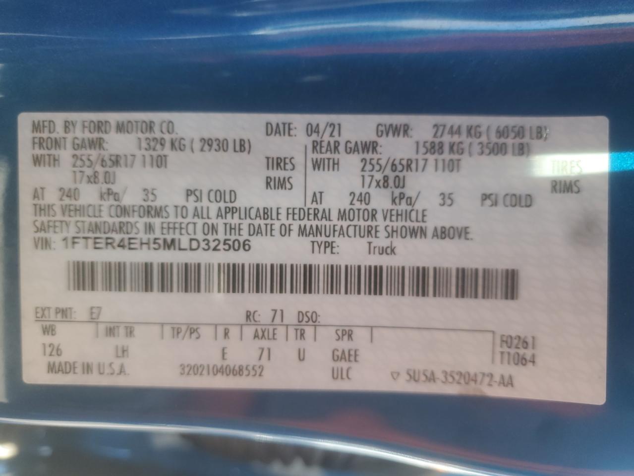 FORD RANGER 2.3 2021 р.в., Задній привід (1FTER4EH5MLD32506) з США