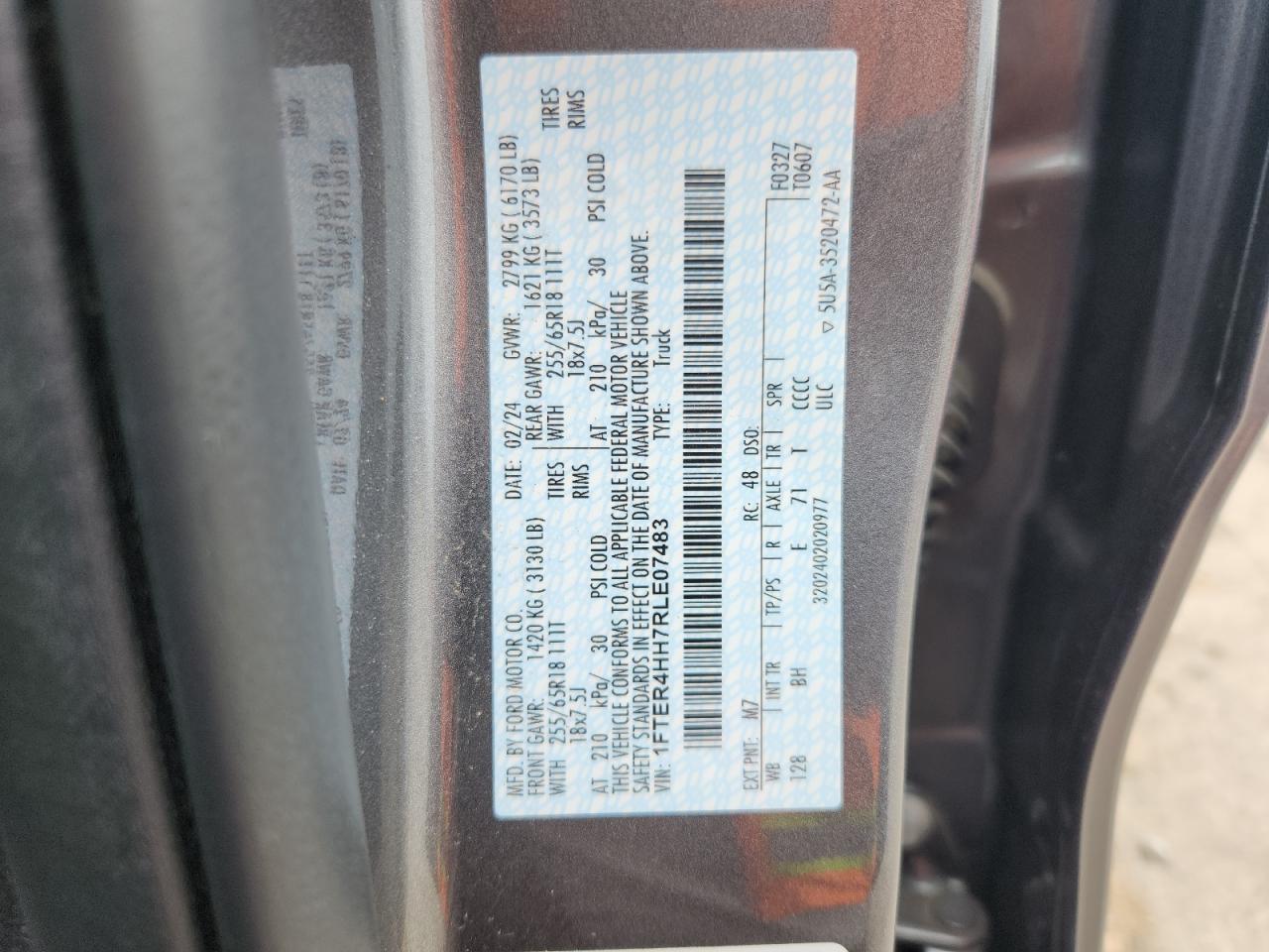 FORD RANGER 2.3 2024 р.в., 4x4 з заднім приводом (1FTER4HH7RLE07483) з США