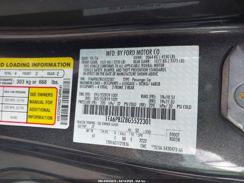 FORD SHELBY GT350 5.2 2016 р.в., Задній привід (1FA6P8JZ8G5522301) з США