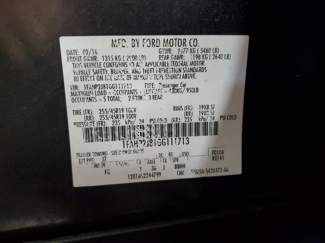 2016 FORD TAURUS LIMITED