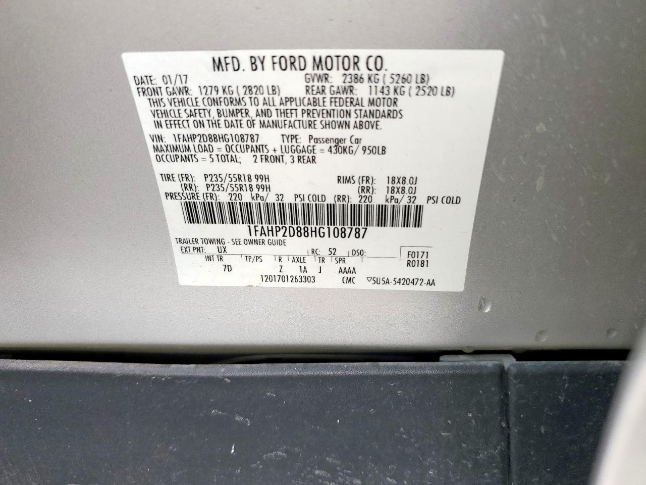 FORD TAURUS 3.5 2017 р.в., (1FAHP2D88HG108787) з США