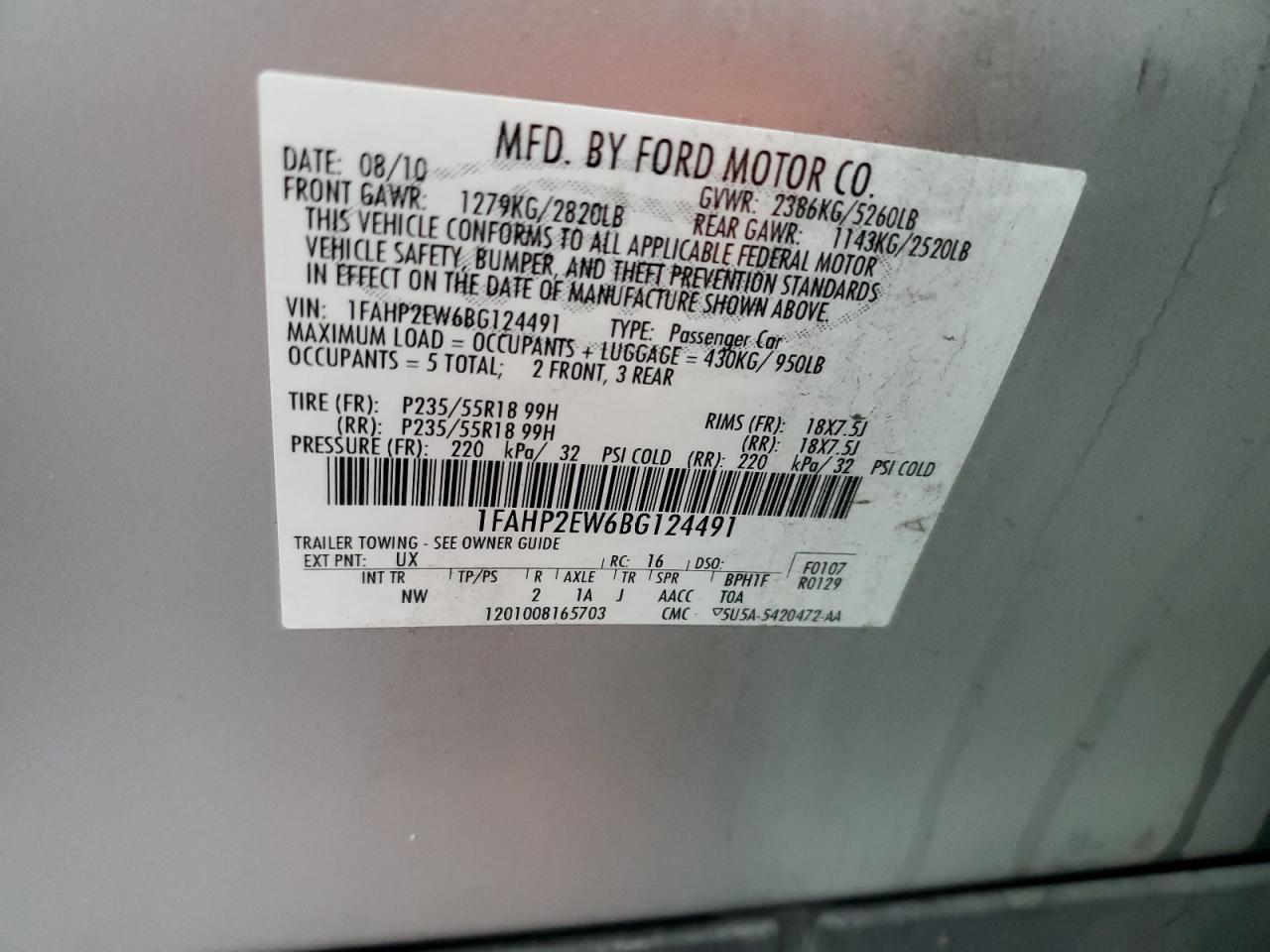 Колір СрібнийЦиліндри 6VIN 1FAHP2EW6BG124491Стан Заводиться та їде (перевірено)Ушкодження З боків
