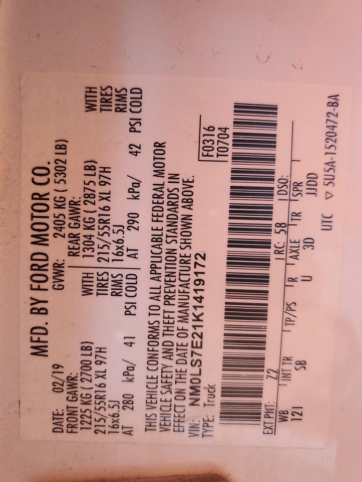 FORD TRANSIT CONNECT 2.0 2019 р.в., (NM0LS7E21K1419172) з США