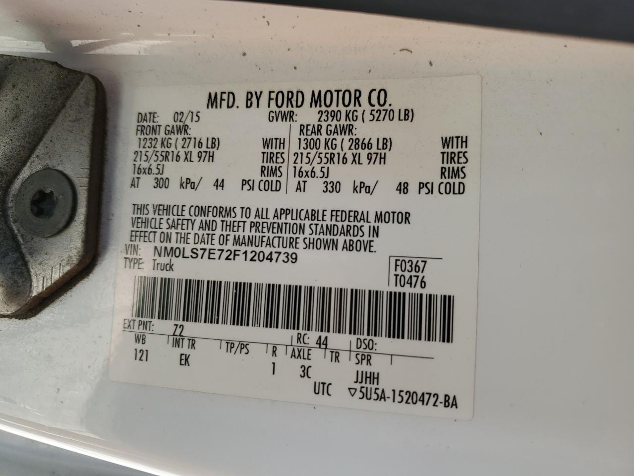 Колір БілийЦиліндри 4VIN NM0LS7E72F1204739Стан Заводиться та їде (перевірено)Ушкодження З боківДата аукціону 2025-11-06