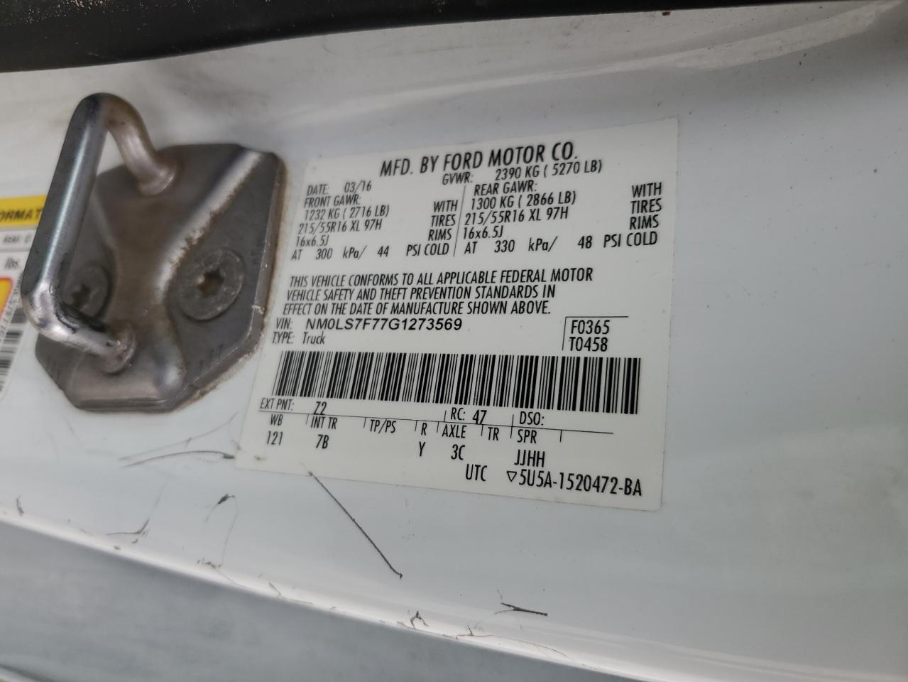 FORD TRANSIT CONNECT 2.5 2016 р.в., (NM0LS7F77G1273569) з США
