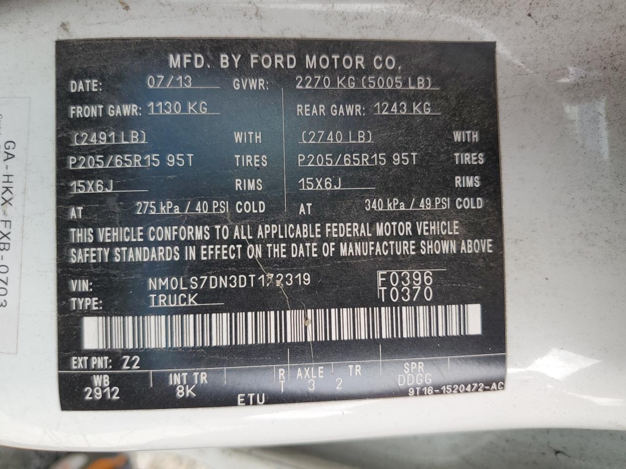 Колір БілийЦиліндри 4VIN NM0LS7DN3DT172319Стан Заводиться та їде (перевірено)Ушкодження Передня або задняДата аукціону 2025-11-05