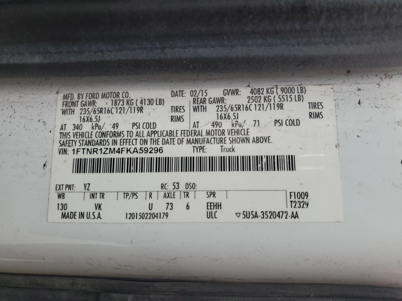 FORD TRANSIT 3.7 2015 р.в., Задній привід (1FTNR1ZM4FKA59296) з США